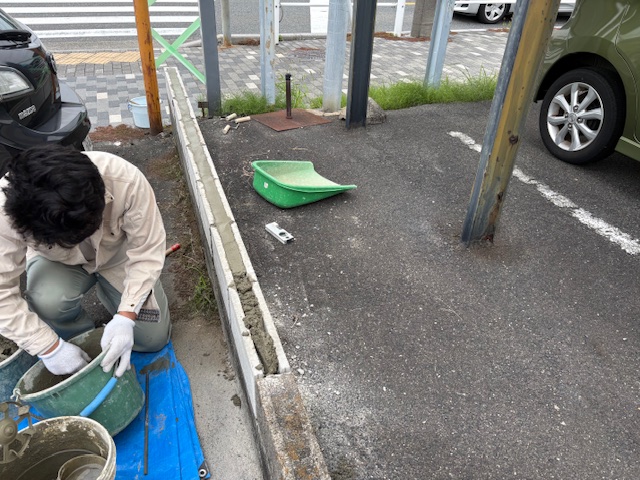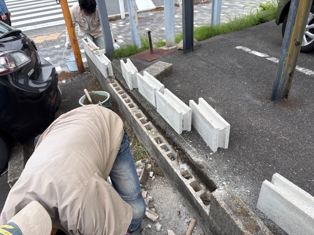 崩れたブロックを積み直しました 横が通学路ということで事故がある前に対応するオーナー様でした